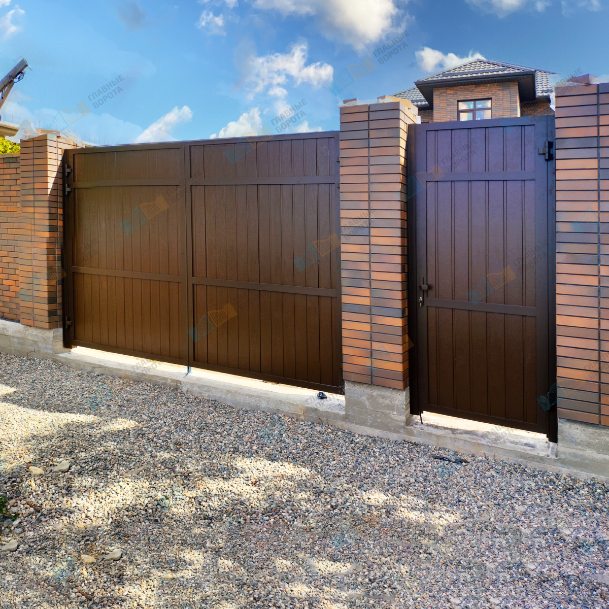 Ворота Alutech распашные с калиткой